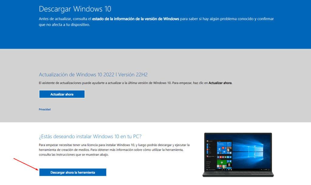 Para descargar la herramienta de creación de medios, simplemente sigue estos pasos: